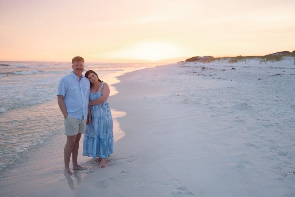 Ultimately, the choice between a sunrise or sunset photoshoot on 30A depends on your family’s preferences and schedule. If you love the idea of a peaceful, serene morning on the beach with soft, flattering light—and the beach all to yourselves—then a sunrise beach photoshoot is ideal. That beautiful pinky misty hue that appears in the early morning is something special. However, if you prefer vibrant, dramatic lighting and the flexibility of scheduling later in the day, then a sunset photoshoot might be your perfect match.