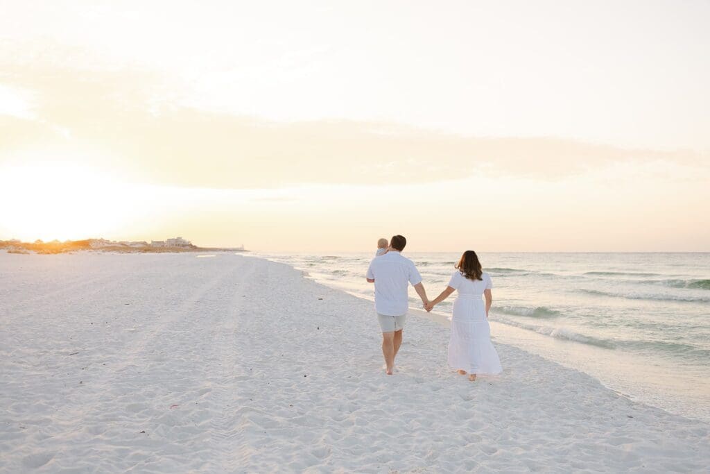 Sunrise light is soft and gentle, often creating a warm, golden glow that is flattering on all skin tones. The slight pinky misty hue in the sky during early morning hours adds a unique, romantic quality to the photos that you just don’t get at sunset. It’s perfect for families looking for a more ethereal vibe to their 30A family photos.